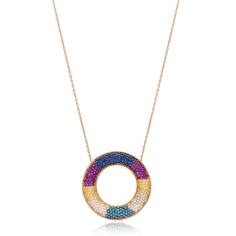 สร้อยคอจี้เพทายสีรุ้งทรงกลมกลวงเครื่องประดับเงินสเตอริ925ตุรกีขายส่ง