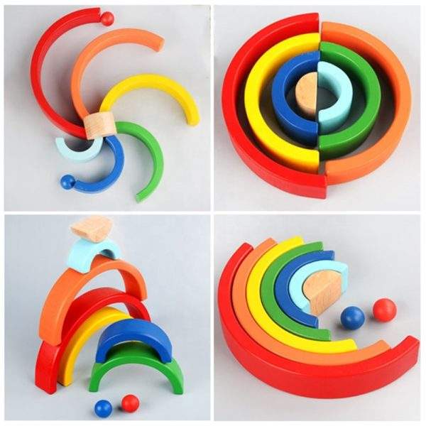 ตัวต่อไม้สีรุ้งของเล่นเพื่อการศึกษาสำหรับอายุ2ถึง4ปีการออกแบบที่ทันสมัยจาก Tradnary