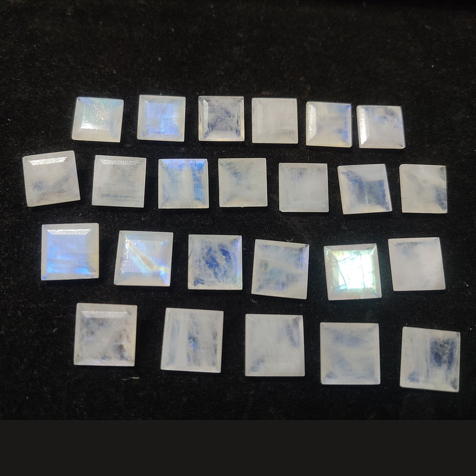 พลอยมูนสโตนสีรุ้ง16x16มม. สำหรับทำเครื่องประดับหินหลวมคุณภาพดีที่สุดสำหรับนักออกแบบ