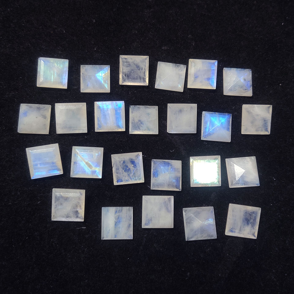 หินมูนสโตนรูปสี่เหลี่ยมจัตุรัสตัดสี่เหลี่ยมลายมูนสโตนสีรุ้ง