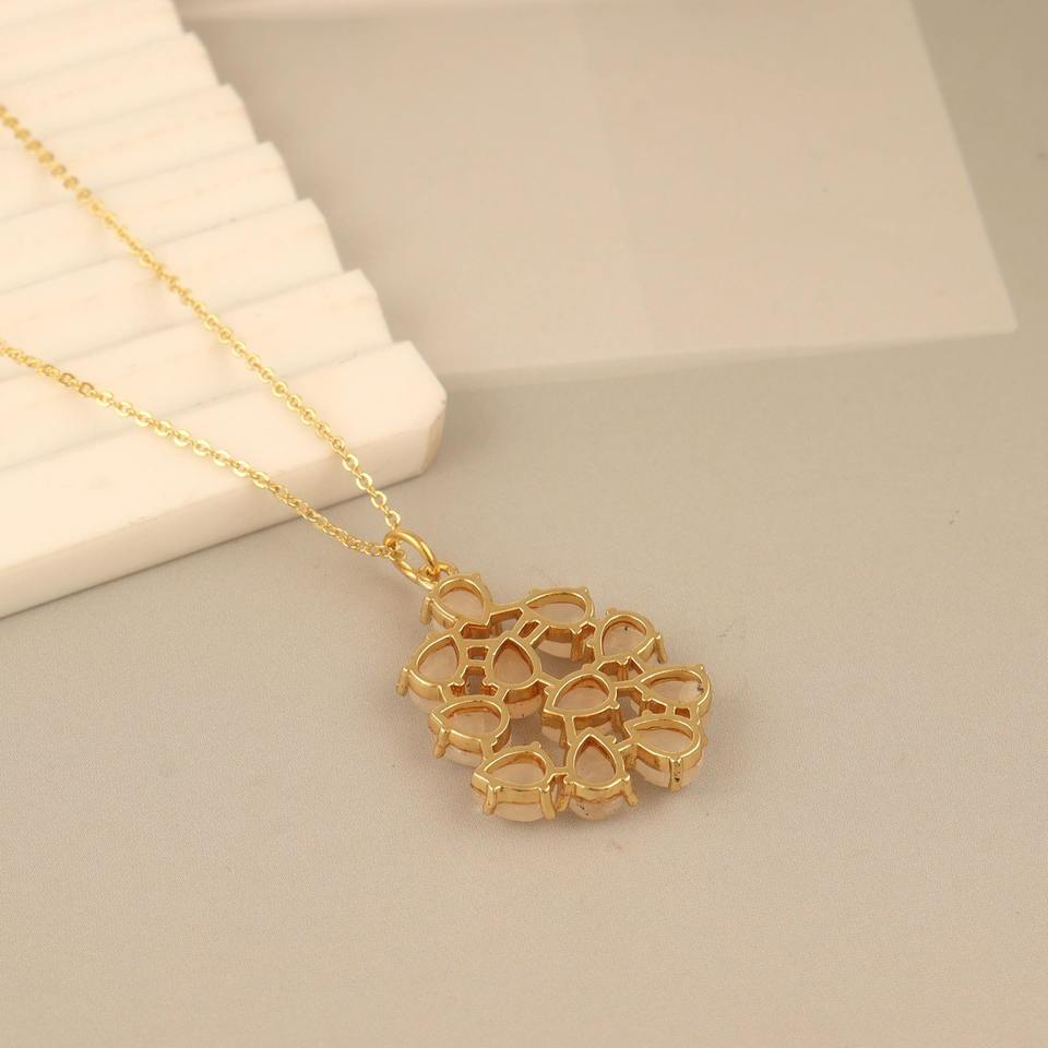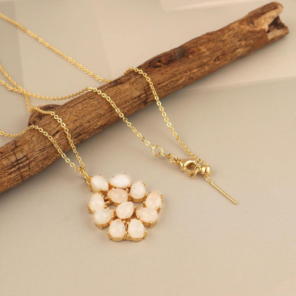 สร้อยคอจี้รูปหยดน้ำประดับมูนสโตนสีรุ้ง ชุบทองเหลือง สายปรับได้ เหมาะสำหรับใส่ทุกวัน