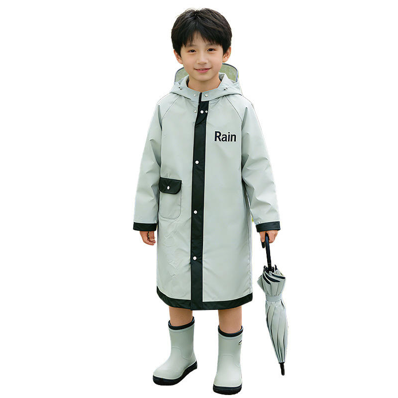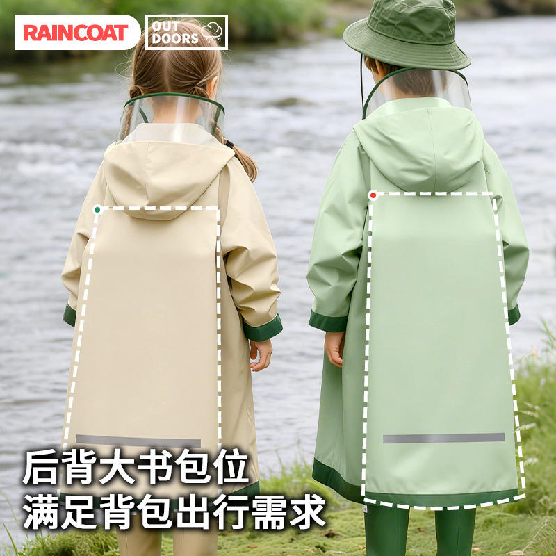 เสื้อกันฝนแบบพอนโชสำหรับเด็กพร้อมกระเป๋าเป้สะพายหลังกันน้ำสำหรับใส่กลางแจ้งสำหรับไปโรงเรียนและตั้งแคมป์บนภูเขาสีเขียวอ่อนสีกากี