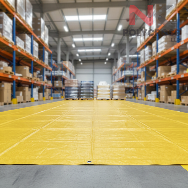 ผ้าใบกันฝนสำหรับปูพื้น ผ้าคลุมพื้นสำหรับทุกสภาพอากาศ สำหรับพื้นที่ทำงานกลางแจ้งและที่พักพิงชั่วคราว ขายในอินเดีย