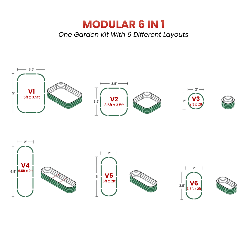 แปลงปลูกผักยกพื้นกลางแจ้งแบบโมดูลาร์ 6in1 ทำจากโลหะชุบสังกะสี รุ่น GB030