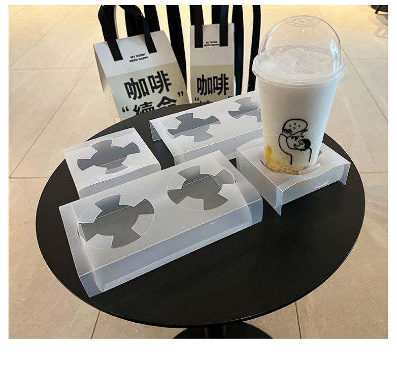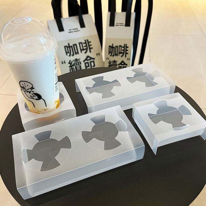 ที่วางแก้วเครื่องดื่มพลาสติก PP แบบขุ่น พิมพ์โลโก้ได้ตามต้องการ ฐานสองชั้น แข็งแรง ทนทาน ใช้สำหรับใส่ขนม น้ำตาล หรือของใช้แบบนำกลับบ้าน