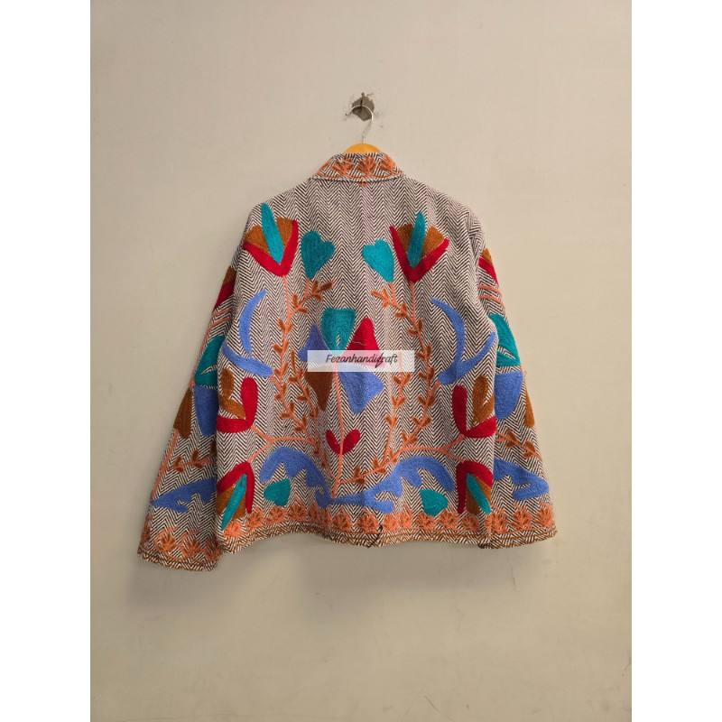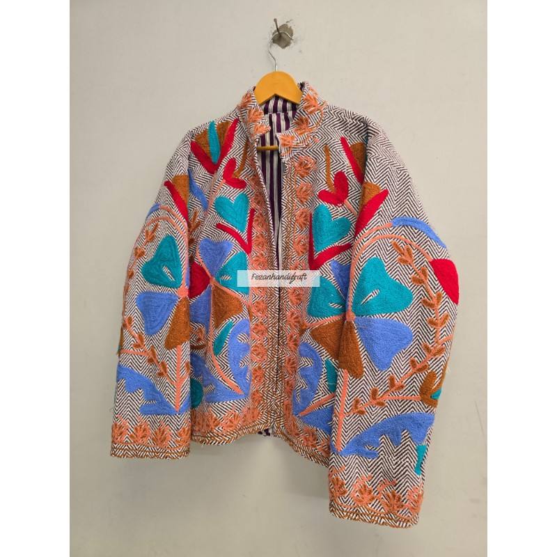 เสื้อแจ็คเก็ตซูซานีงานฝีมือจากราชสถาน ผ้าฝ้าย 100% คอตั้ง ลายดอกไม้ สำหรับผู้หญิง สวมใส่ในงานปาร์ตี้ ฤดูใบไม้ร่วง/ฤดูหนาว/ฤดูใบไม้ผลิ