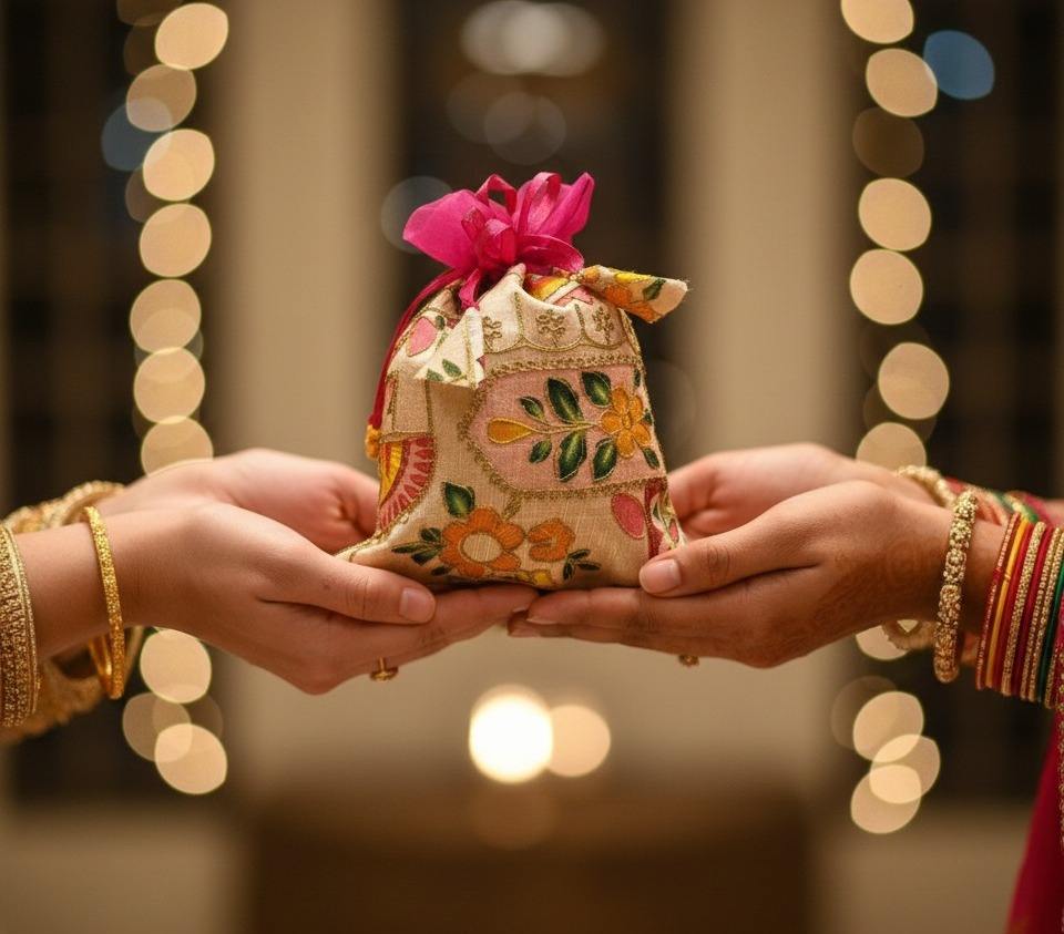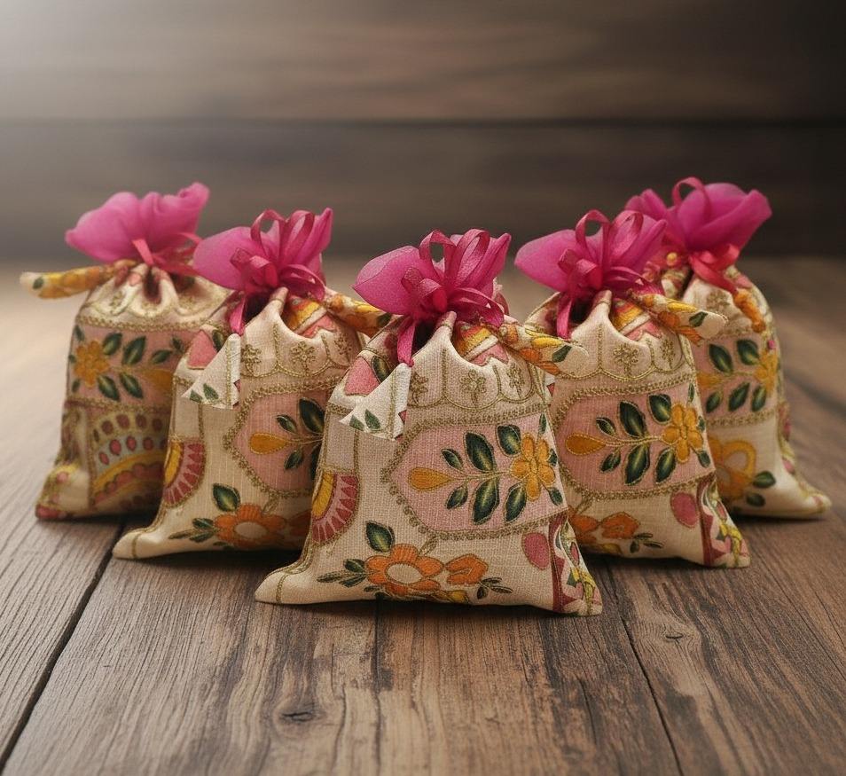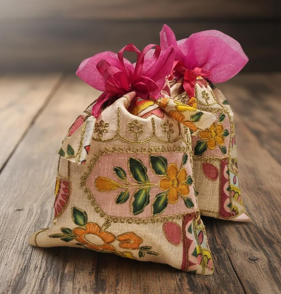 กระเป๋าผ้าไหมปักลายซาร์โดซีทำมือจากราชสถาน สำหรับงานแต่งงาน ฮัลดี ฮีน่า ซันจีต นิกาห์ โอนัม ปอนกัล ถุงของขวัญสำหรับแจกแขก