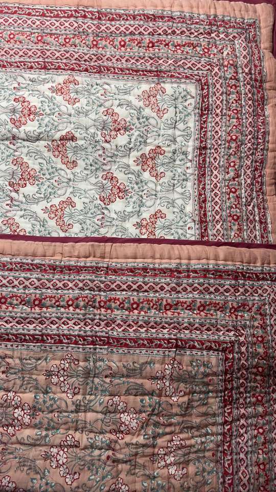 Rajasthani ผ้านวมผ้าฝ้ายแท้ทำมือพิมพ์ลายน้ำหนักเบาทำด้วยมือผ้าฝ้ายแท้ผ้าห่ม Kantha ออร์แกนิคผ้าแคนธาแบบกลับด้านได้