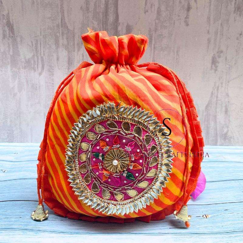 กระเป๋าผ้าฝ้ายพิมพ์ลายเลเฮริยาหลากสีสไตล์ราชสถาน ทำมือสำหรับผู้หญิง กระเป๋าแบบมีเชือกผูก กระเป๋าพ็อตลีงานแต่งงานแบบดั้งเดิม