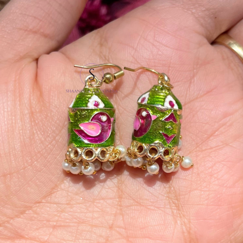 ต่างหู jhumkas สไตล์ rajasthani งานเคลือบด้วยลูกปัดมุกต่างหูออกแบบรูปแบบนกต่างหูสำหรับผู้หญิง