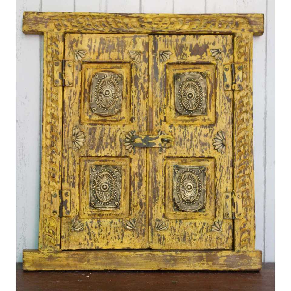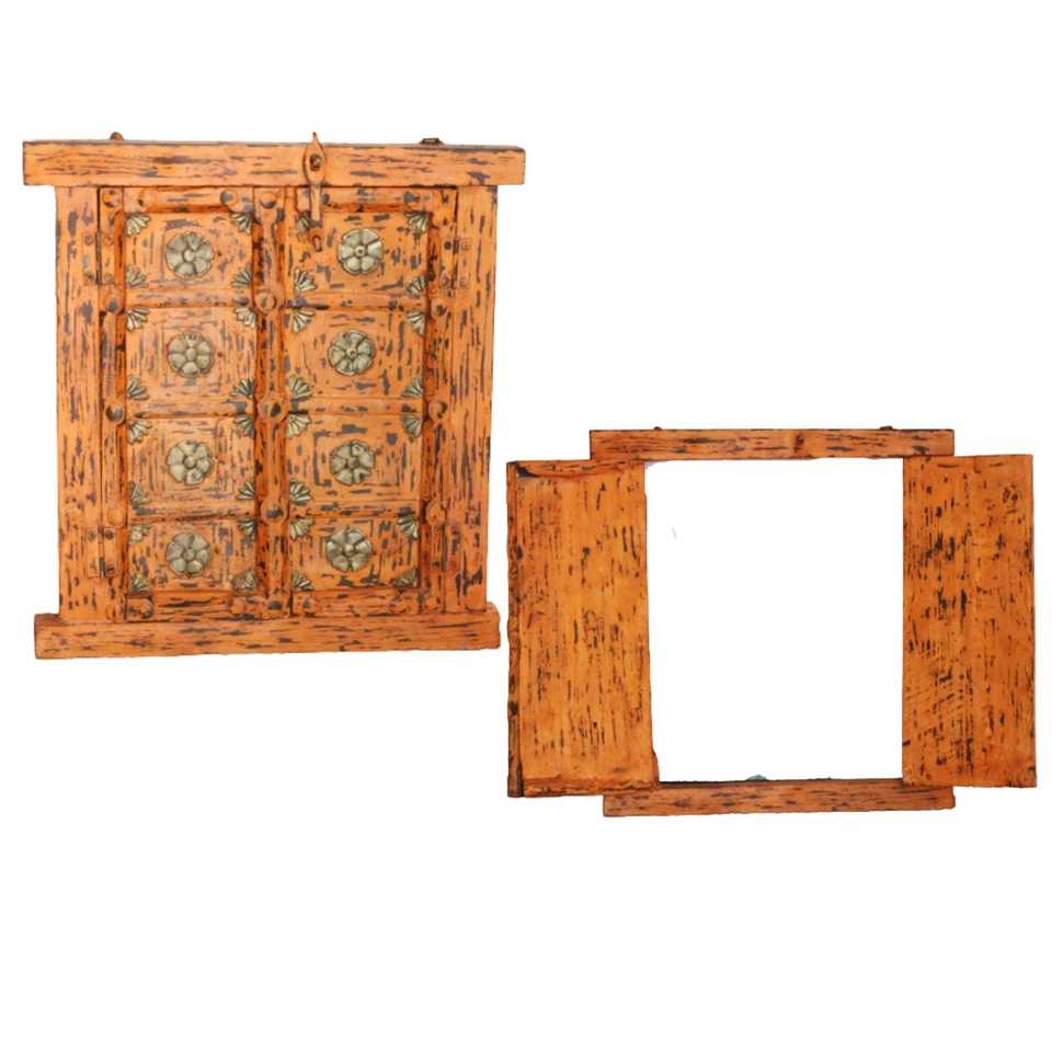 Rajasthani หน้าต่างไม้หมู่บ้าน-ดูบ้านตกแต่งสำหรับการแสดงหน้าต่างที่ไม่ซ้ำกัน