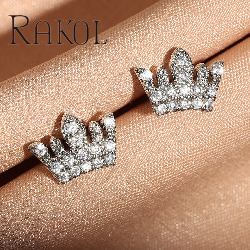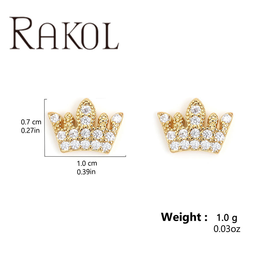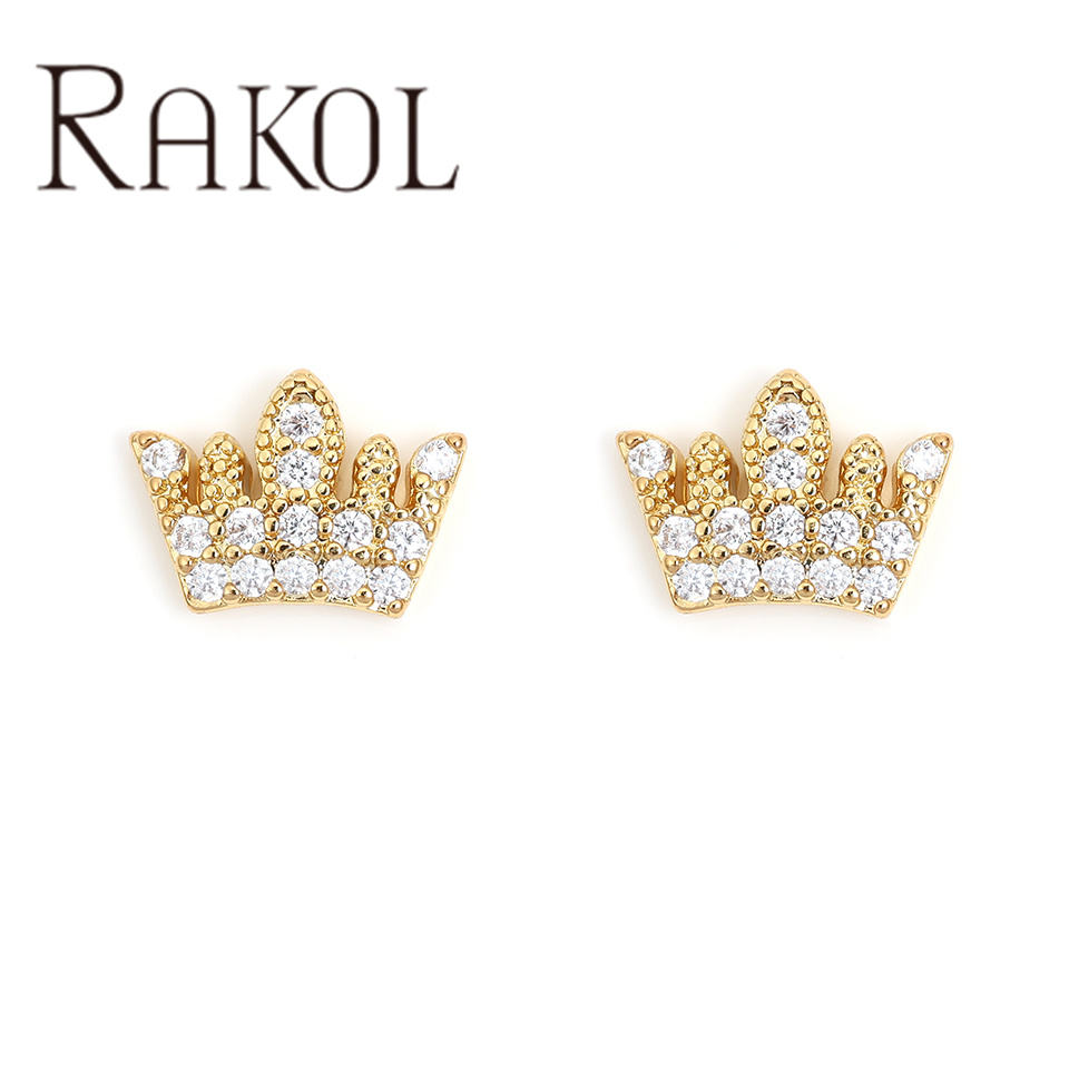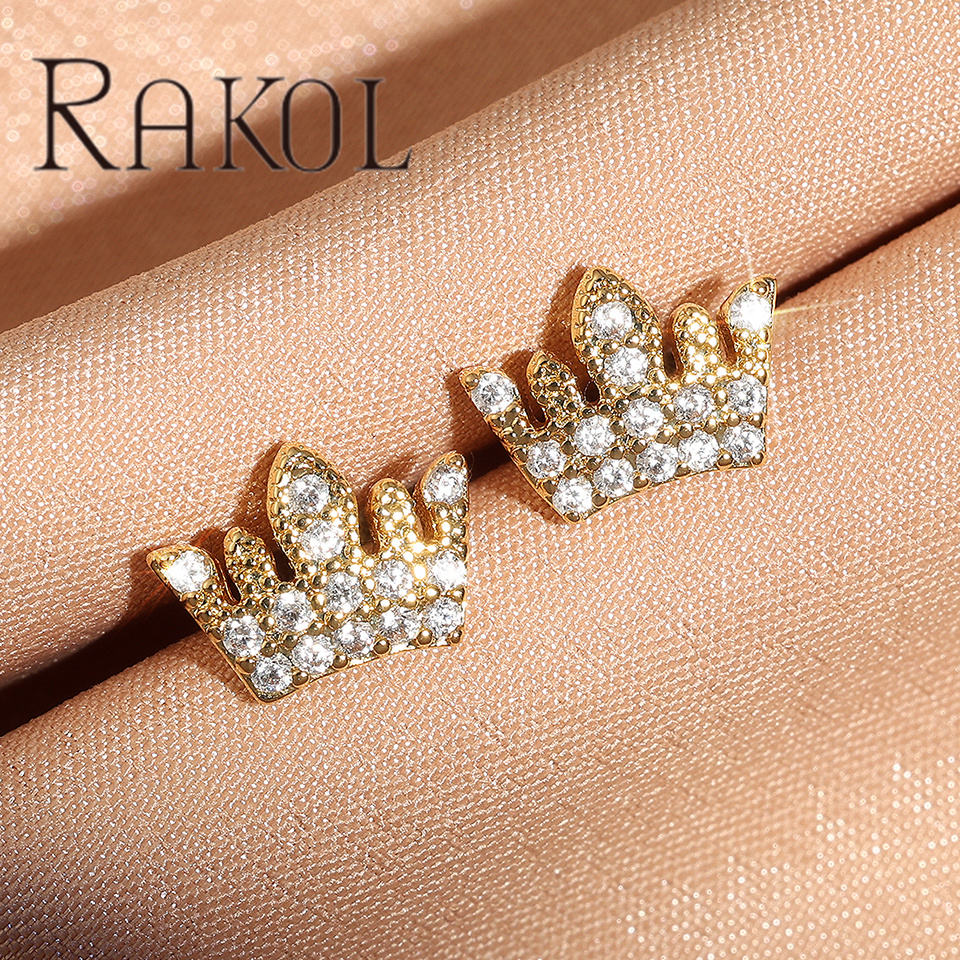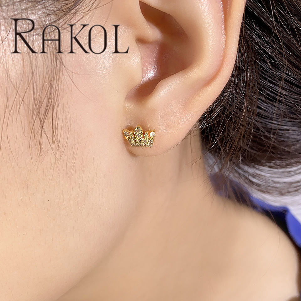 ต่างหูรูปมงกุฎ E21090069 rakol แบบเรียบง่ายต่างหูแฟชั่นชุบทองแบบตรงดึงสำหรับผู้หญิง2024