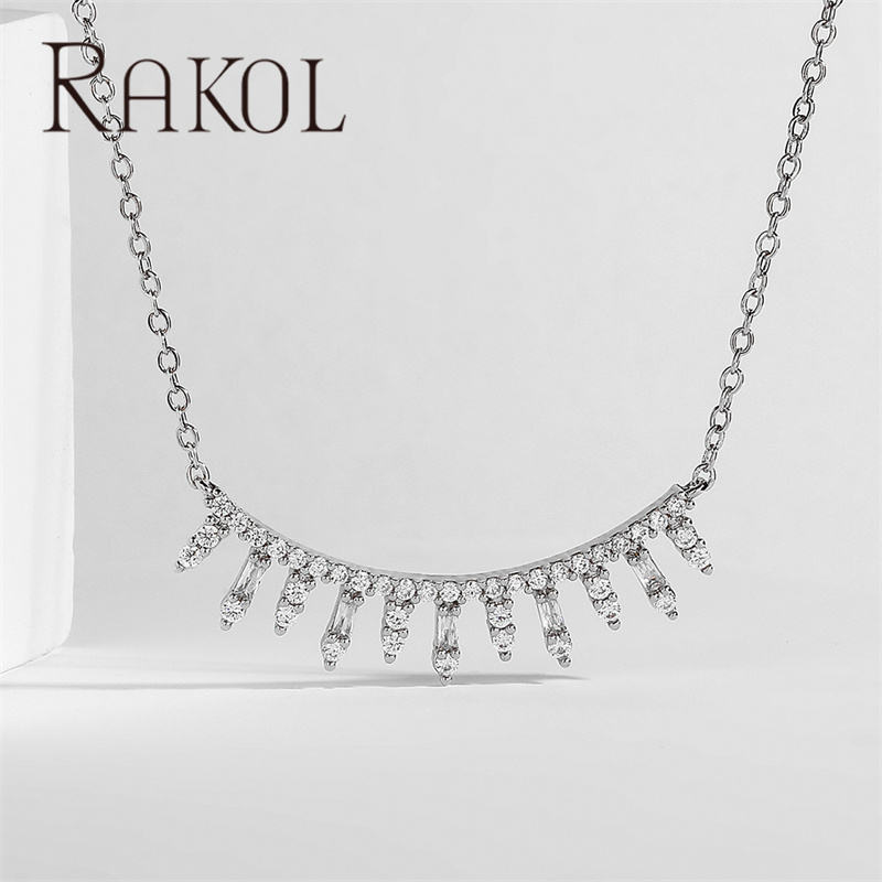 Rakol จี้ NP5222ไมครอนสีขาวประดับเพชรสวิสรูปดวงอาทิตย์สำหรับผู้หญิงสร้อยคอประดับดาวระเบิดชุบทอง