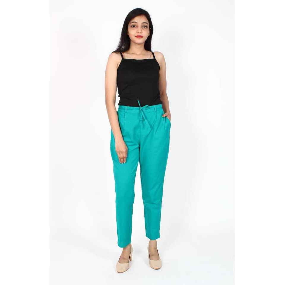Rama กางเกงผ้าคอตตอนสีเขียวยืดหยุ่นทรงตรงพอดีตัว