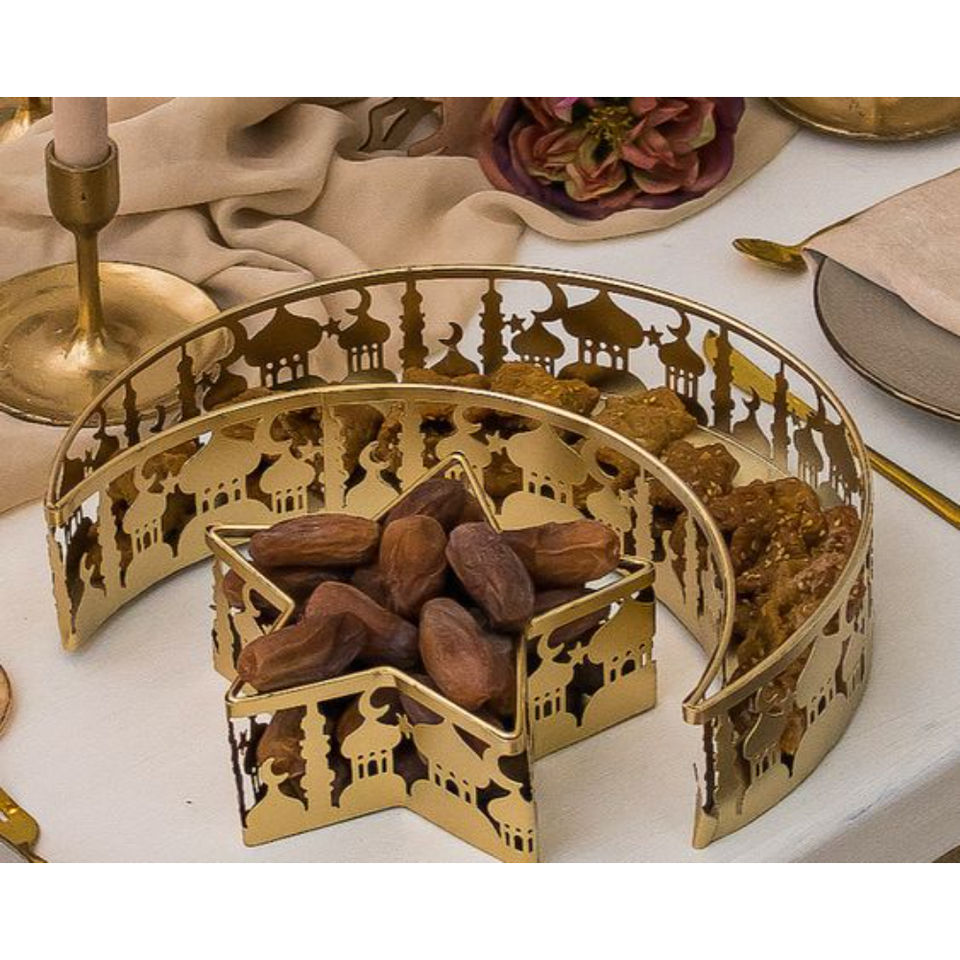 Ramadan Buffet Tray Round Ramadan Celebration Tray Eid Al-Fitr Ornaments Set of 3 Ramadan Tray by Indian Metal World
