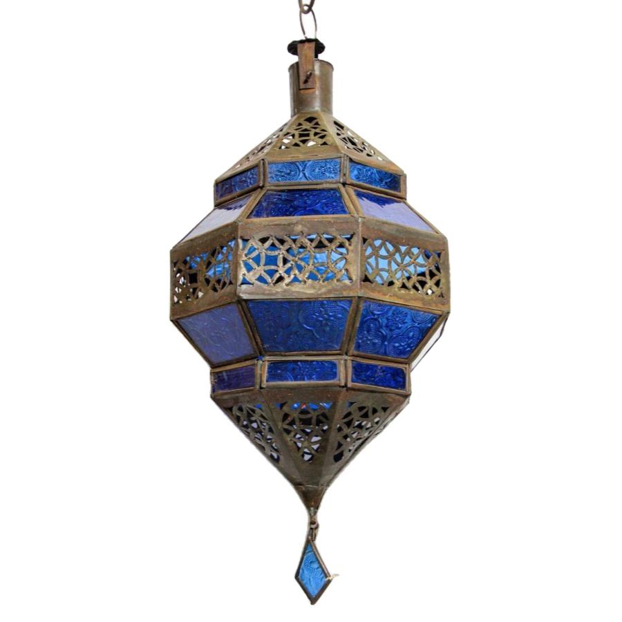 โคมไฟแขวนตกแต่งรอมฎอน โคมแก้วสีน้ำเงินโบราณสไตล์โมร็อกโก ของตกแต่งบ้านและสวน โคมไฟโลหะ ขายดี