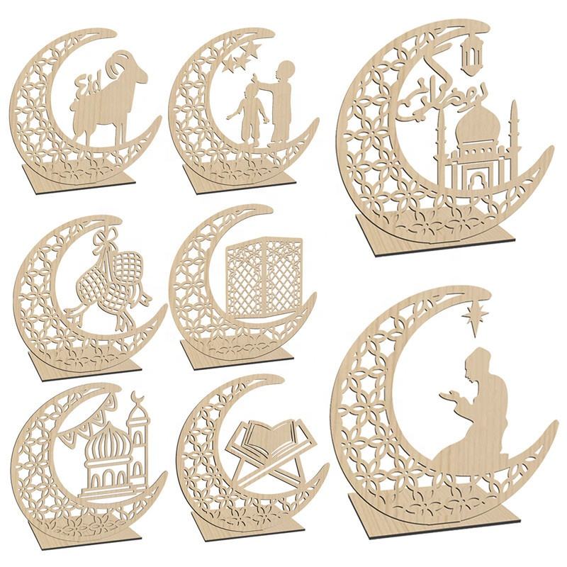กรอบรูปไม้ตกแต่งวันอีดมูบารัคสำหรับเดือนรอมฎอน ทำด้วยมือพร้อมลายนูนและการพิมพ์แบบไดคัท 2 สี ของตกแต่งบ้าน