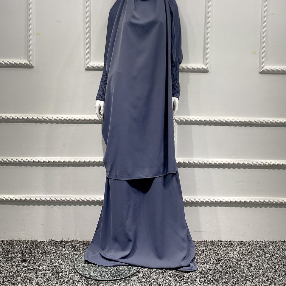 รอมฎอน Eid Jilbab ชุดมุสลิม2ชิ้น,ชุดอาบายาชุดเดรสมุสลิมชุดคลุมฮิญาบ Kaftan Niqab อิสลามดูไบ