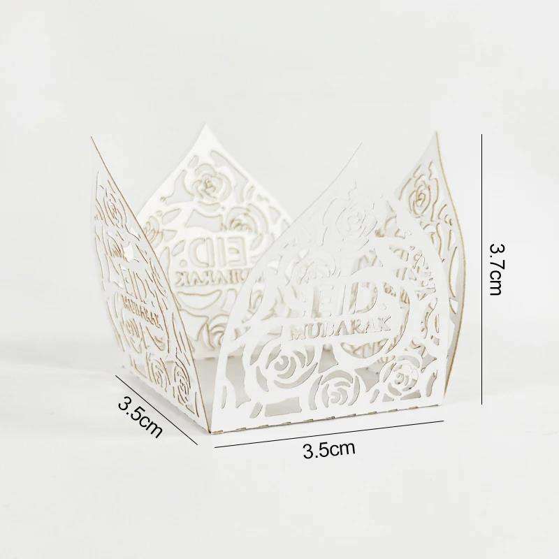กล่องน้ำตาลฉลุลายเลเซอร์สำหรับเทศกาลอีด มูบาร็อค กล่องกระดาษใส่ขนม/ช็อกโกแลต สำหรับของขวัญงานเลี้ยงอีด