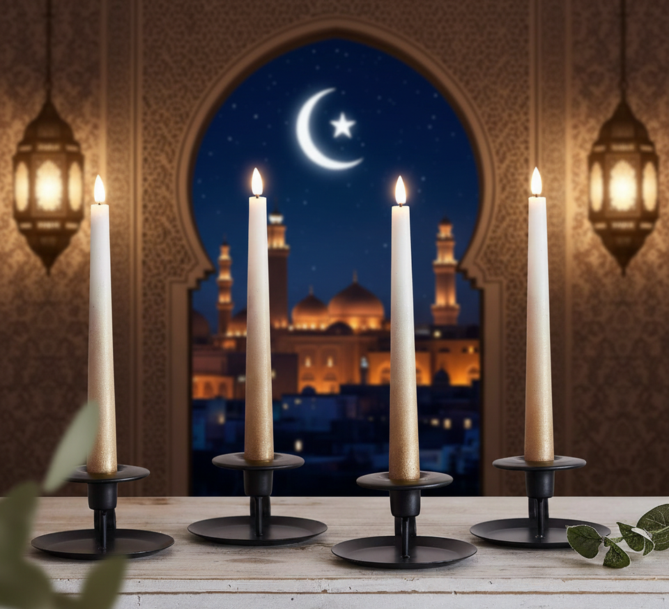 ชุดเทียนทรงเรียวทำมือสุดหรูสำหรับเดือนรอมฎอน ทำจากไขถั่วเหลืองและพาราฟิน ไร้ควัน ไม่มีกลิ่นหอม เหมาะสำหรับงานเฉลิมฉลองรอมฎอน/อีด อีสเตอร์ และคริสต์มาส