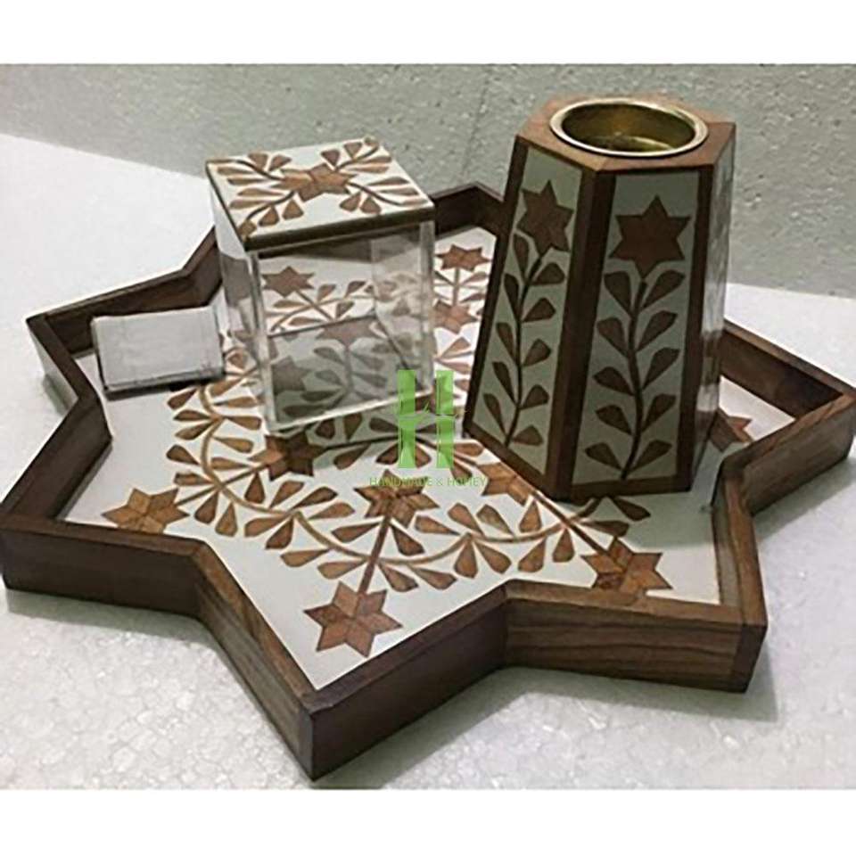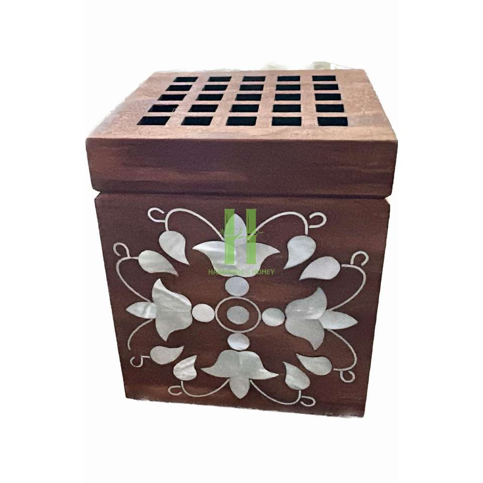 Ramadan Gift Occasion Incense Burner Mother of Pearl and Wooden Inlaid Arabic Set of Tray Incense Bukhoor Handmade From Vietnam