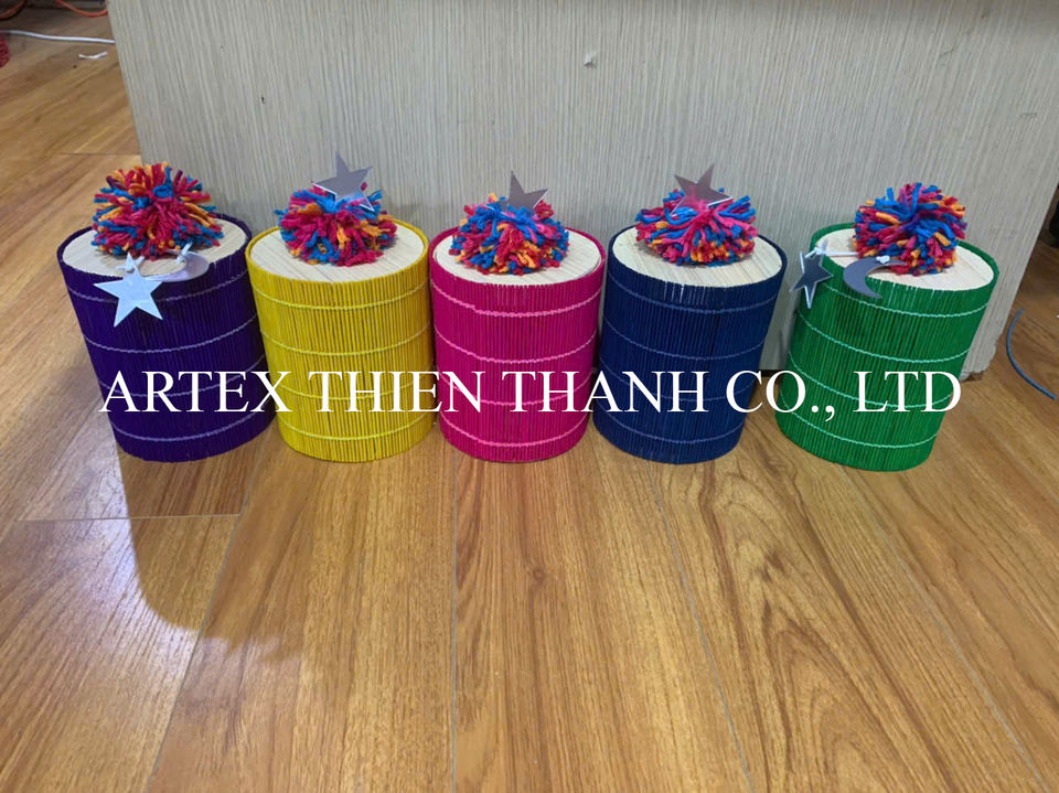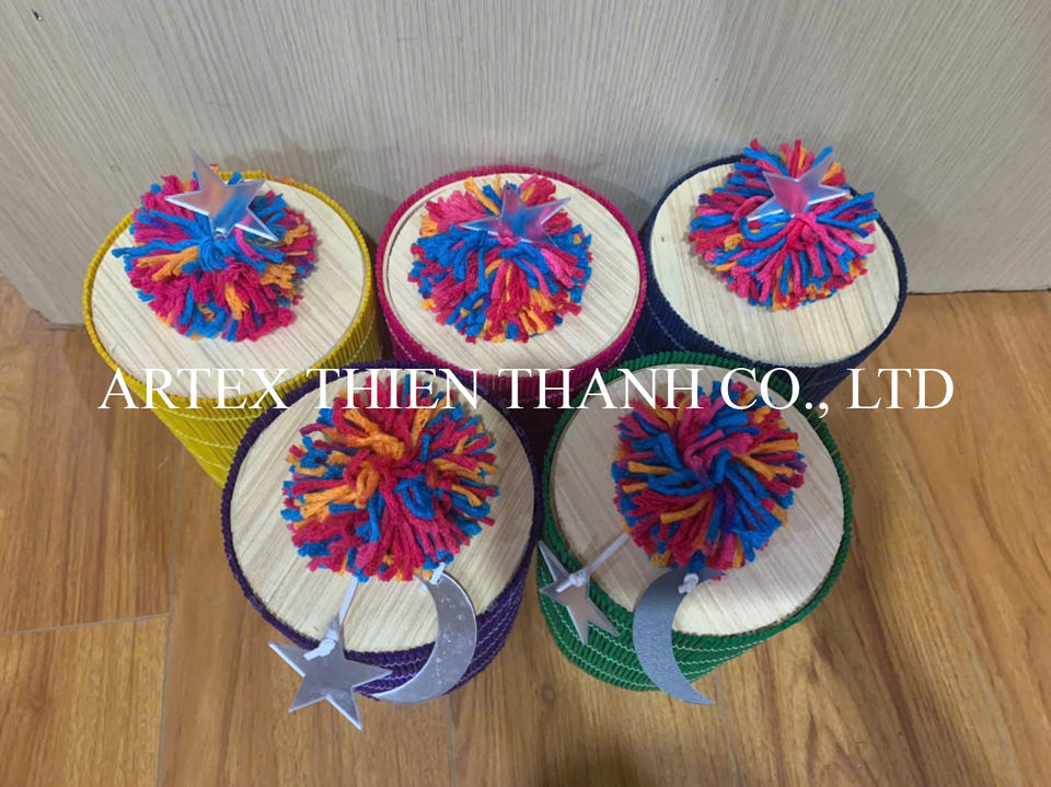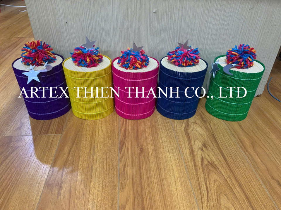 กล่องของขวัญจากไม้ไผ่พร้อมพู่หลากสีกล่องเก็บของทำมือสำหรับเทศกาลอีสเตอร์และเกอร์จีน