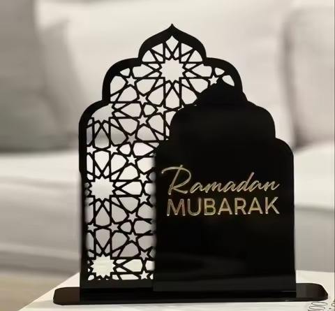 รอมฎอน คารีม อีด มูบารัค ป้ายโลหะดีไซน์ทันสมัยสีทองสำหรับติดผนัง/ตั้งโต๊ะ สีตามสั่ง สำหรับวันขอบคุณพระเจ้า