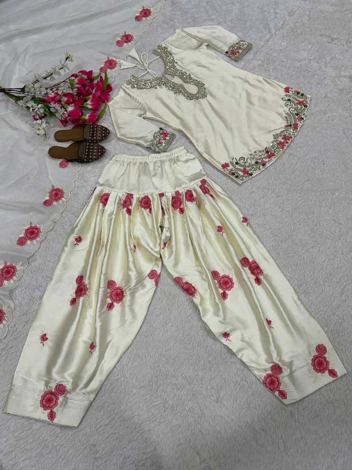 ชุดแฟร์ชีผ้าไหมชินนอนหรูหรา 3 ชิ้น ยี่ห้อ Ramdev Trading พร้อมชุดคุร์ติปักลาย ผ้าคลุมไหล่ แห้งเร็ว สไตล์ทันสมัย สำหรับงานแต่งงาน