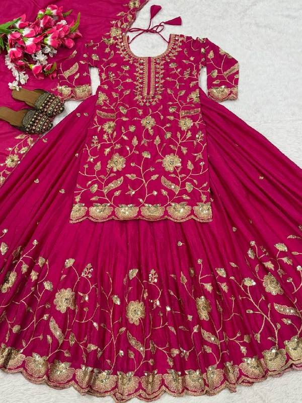 Heavy chinnon Silk Material With 5mm Sequence Embroidery Work