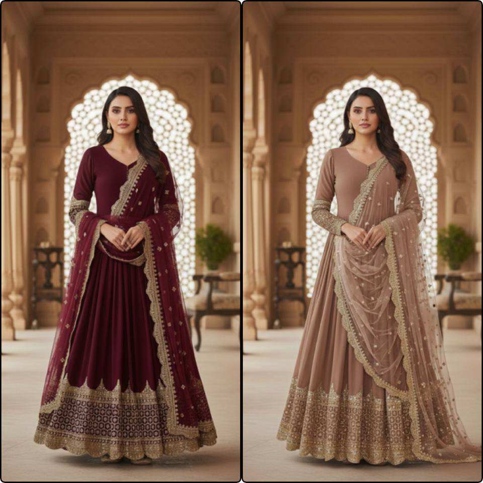 ชุดอานาร์กาลีอินเดียสมัยใหม่จาก Ramdev Trading สำหรับงานแต่งงาน งานดิวาลี งานเลี้ยงสังสรรค์ในครอบครัว ทำจากผ้าเทียม