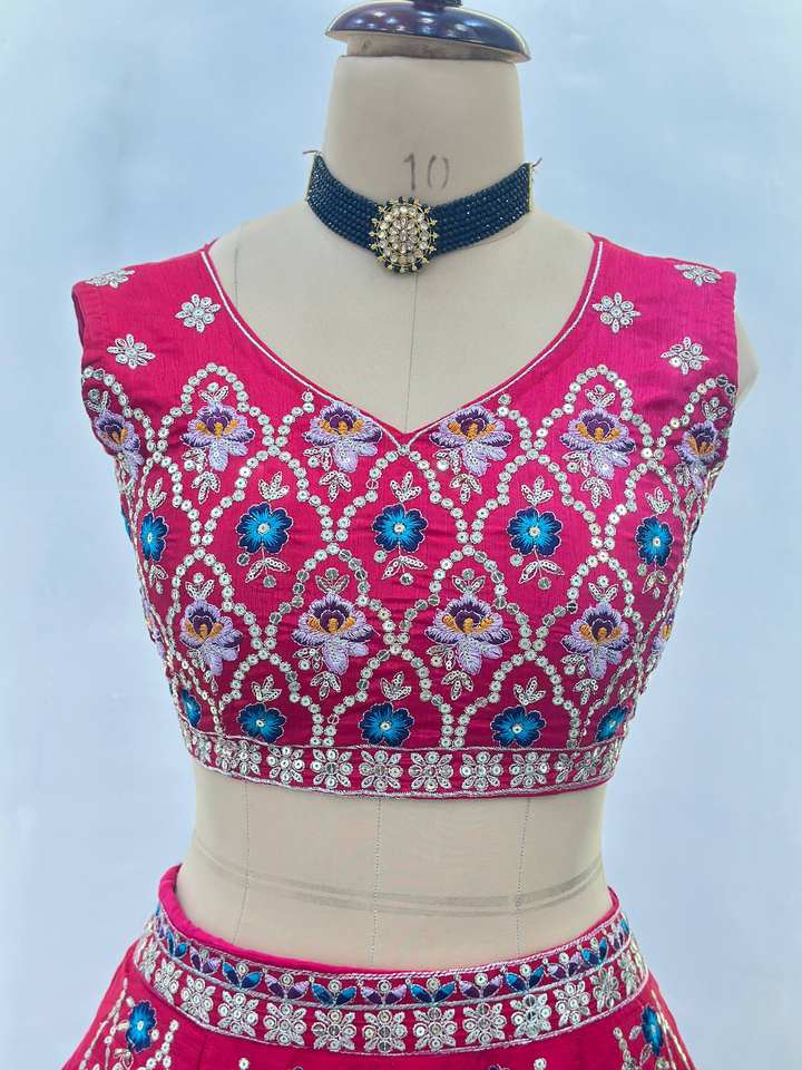 ชุดเลเฮนกาโชลีสีชมพูสุดหรูจาก Ramdev Trading พร้อมงานปักประณีตจากวัสดุรีไซเคิล - สำหรับงานแต่งงาน งานปาร์ตี้ และงานเฉลิมฉลอง