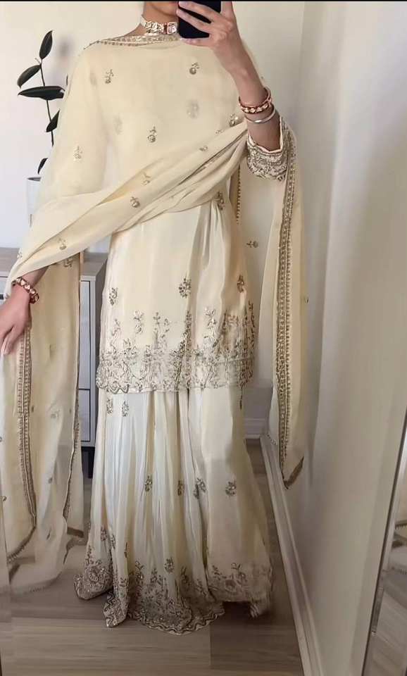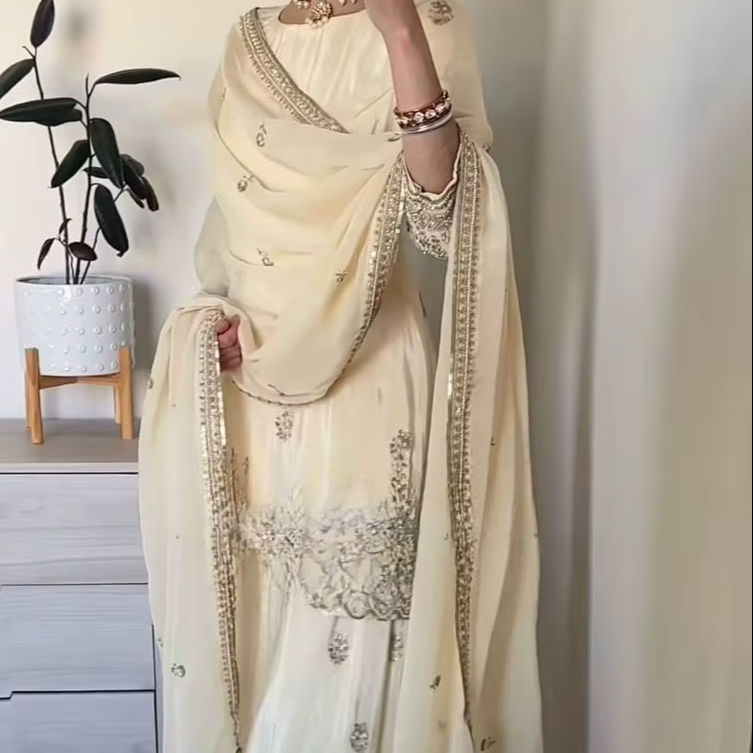 Natural Crep Material With 5mm Sequence Embroidery Work