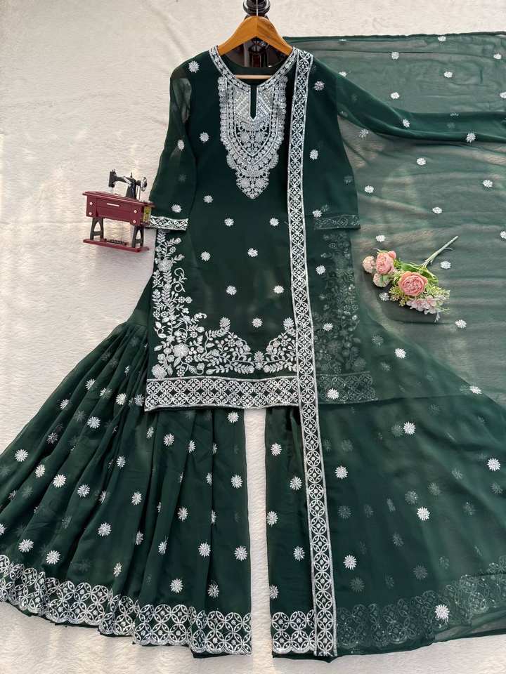 ชุดคุร์ตา/คุรตีสไตล์โมเดิร์นสำหรับผู้หญิงจาก Ramdev Trading ผ้าจอร์เจตต์เทียม ปักลายหนัก แห้งเร็ว ใส่ได้ทุกฤดู เหมาะสำหรับงานแต่งงานและงานปาร์ตี้