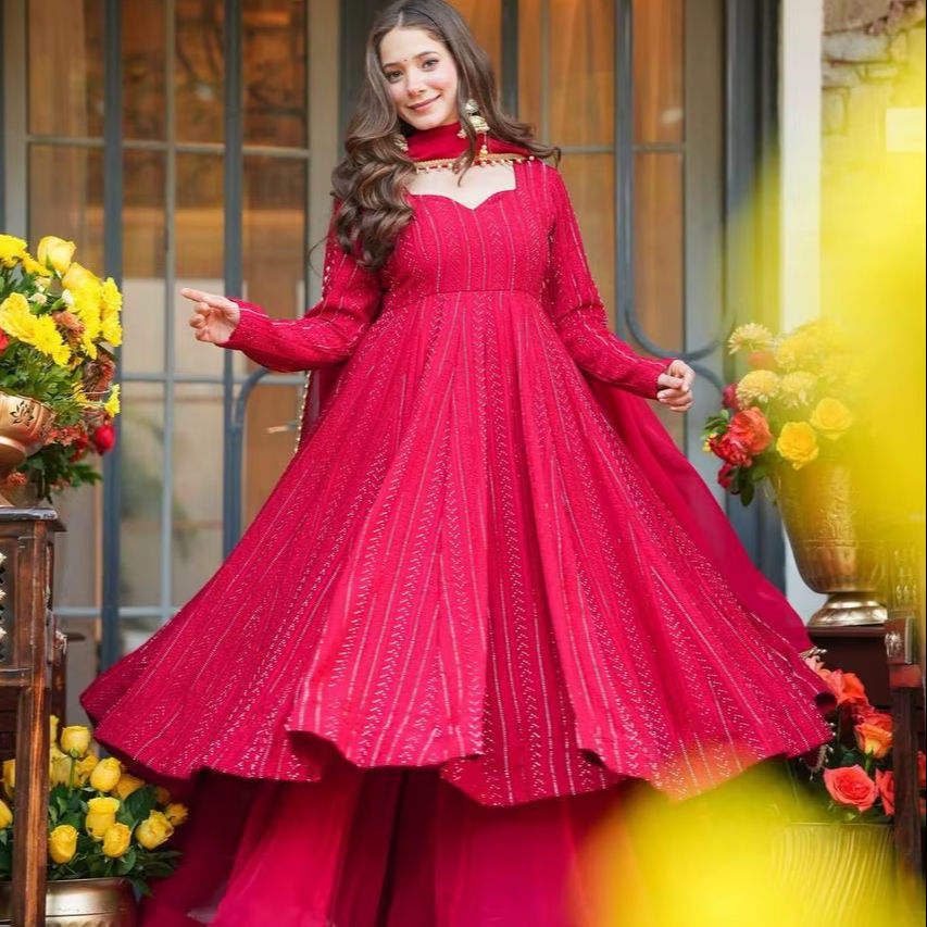 Heavy Blooming Georgette And bits Embroidery Workวัสดุ
