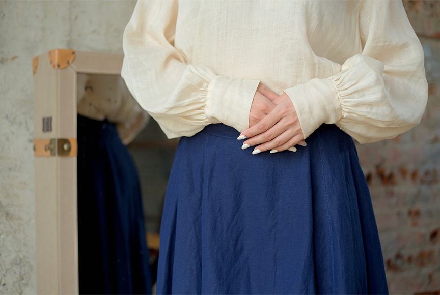 เสื้อเบลาส์ทางการ Ramie ลายสก๊อตหรูหราน้ำหนักเบามีแขนที่ไหลลื่นออกแบบมาให้สวมใส่สบายทรงหลวม