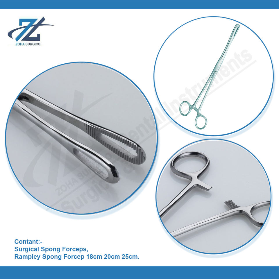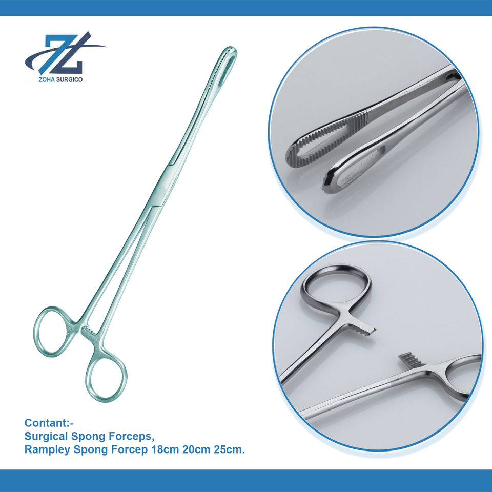 แหนบจับฟองน้ำสแตนเลส Rampley ขนาด 20 ซม. เครื่องมือผ่าตัดทั่วไป ผลิตในปากีสถาน
