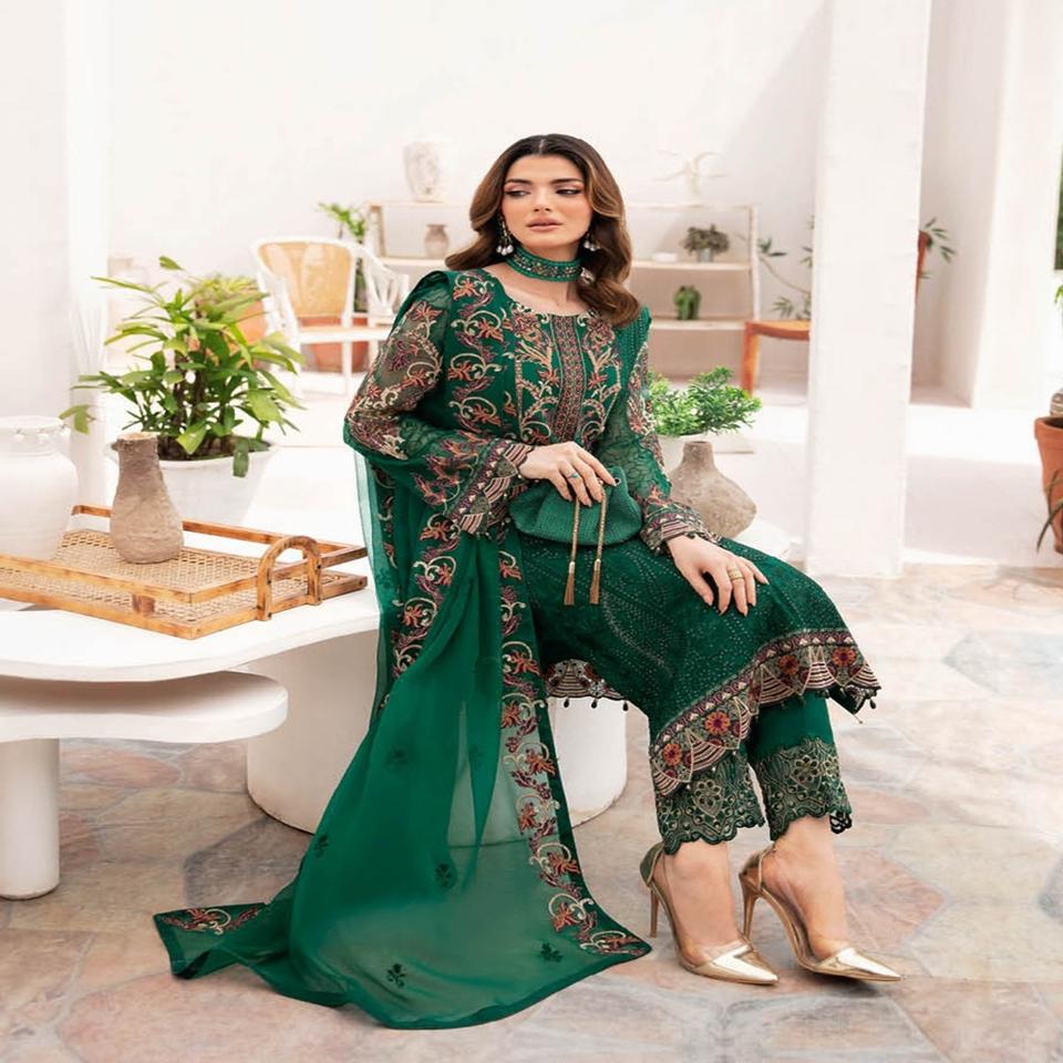 Ramsha VOL ชุดปาร์ตี้ C-7ผ้าชีฟอง3ชิ้นสำหรับผู้หญิงสำหรับงานเทศกาลงานแต่งงานและเสื้อผ้าปากีสถาน