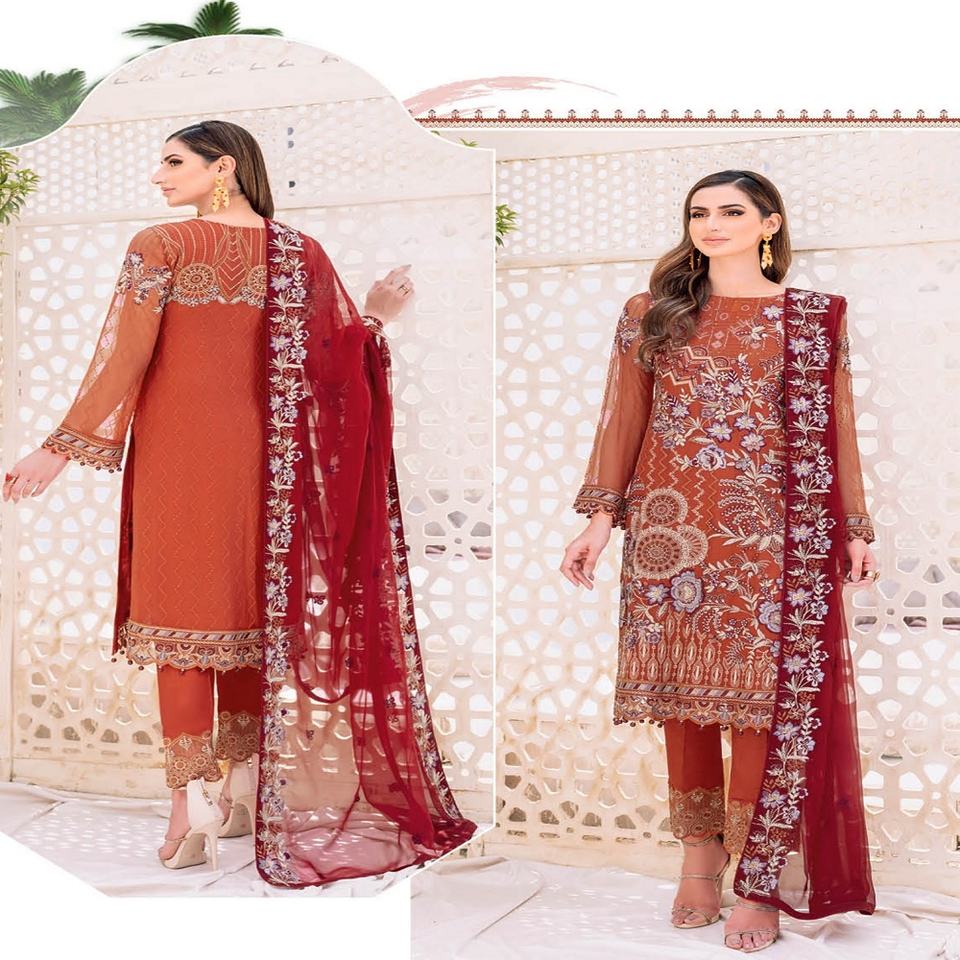 Ramsha F-23ชุดเดรสแต่งงาน3ชิ้นทำจากผ้าชิฟฟ่อนปากีสถานจากแบรนด์ดั้งเดิมของ Ramsha
