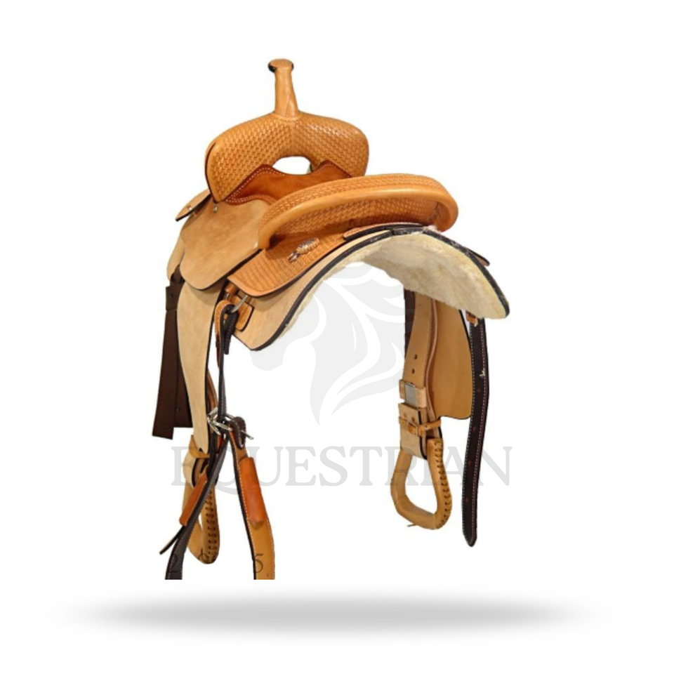 อานหนังปศุสัตว์แบบตะวันตกพร้อมต้นไม้ไม้สำหรับขี่ม้า-อุปกรณ์ขี่ม้า