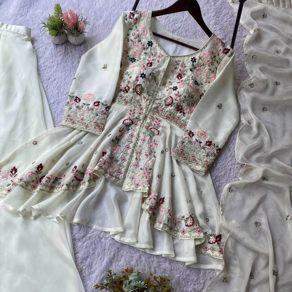 ชุดเสื้อผ้าไหมปักลายรังโกลี พร้อมกางเกงและผ้าคลุมไหล่ ชุดสามชิ้นสไตล์ชาติพันธุ์สำหรับผู้หญิงและเด็กผู้หญิง