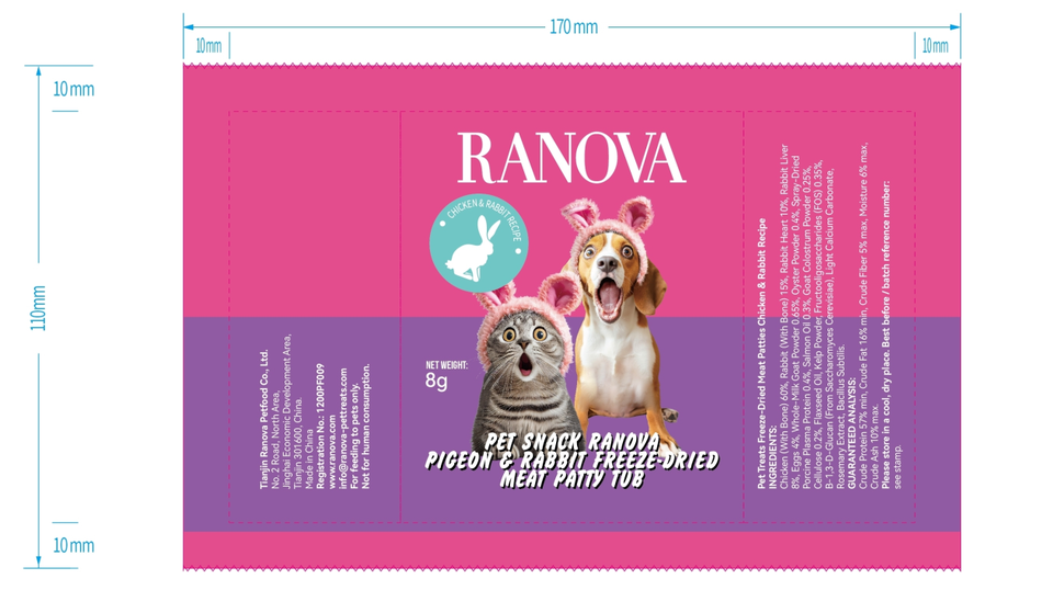 รานาวา พีเจ้น แอนด์ แรบบิท ฟรีซดราย มีทแพตตี้ ทับ ชิ้นเนื้อไก่สูตรพิเศษ ขนมสำหรับสัตว์เลี้ยง