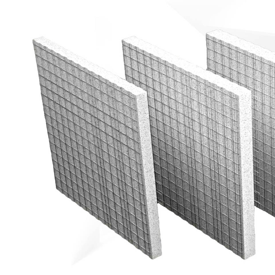 น้ำหนักเบา, รวดเร็วและแข็งแรง, สร้างด้วย pannels แซนวิชคอนกรีตเสริมเหล็ก, ฉนวนกันความร้อนสูง, ทนไฟ, แกน EPS, ระบบอาคารที่ยั่งยืน, คุ้มค่าCore ส่วนประกอบ