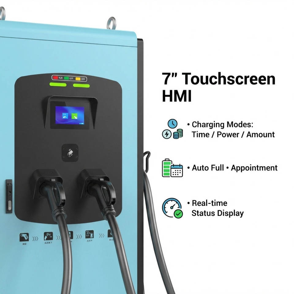 สถานีชาร์จรถยนต์ไฟฟ้าแบบเร็ว 3 เฟส 380V อินพุต 60kW 120kW จุดชาร์จดีซีแบบเร็วสำหรับโครงสร้างพื้นฐานยานยนต์ไฟฟ้าพลังงานใหม่