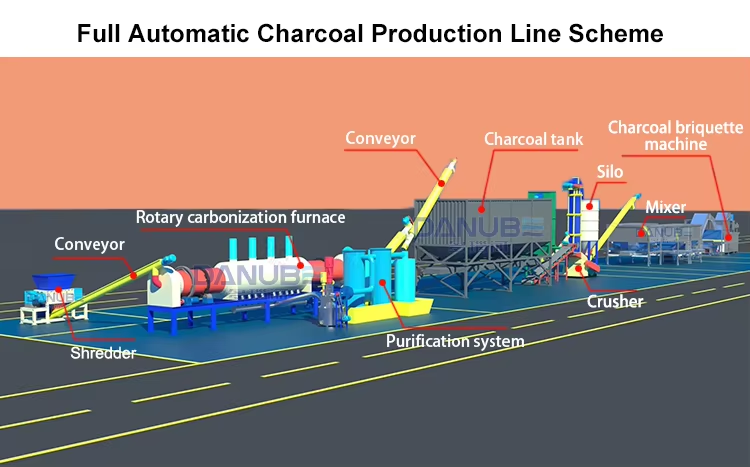 เตาเผาถ่านกะลามะพร้าวแบบให้ความร้อนเร็ว โรงงานผลิตถ่านด้วยกระบวนการไพโรไลซิส เครื่องทำถ่าน