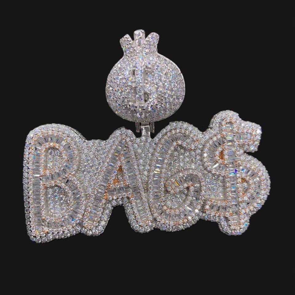 จี้เพชรโมอิสซาไนต์ทรงหัวใจแบบฮิปฮอปสำหรับแร็ปเปอร์ ชุบเงินแท้ 925 สลักชื่อตามสั่ง ประดับเพชร VVS สำหรับผู้ชายและผู้หญิง