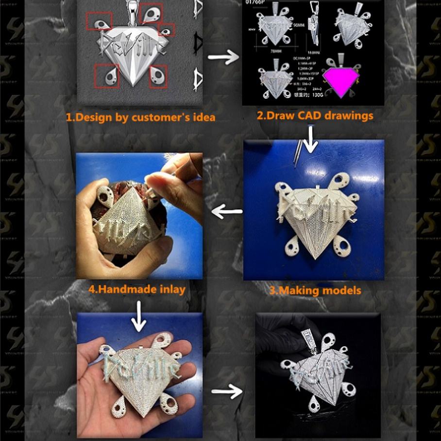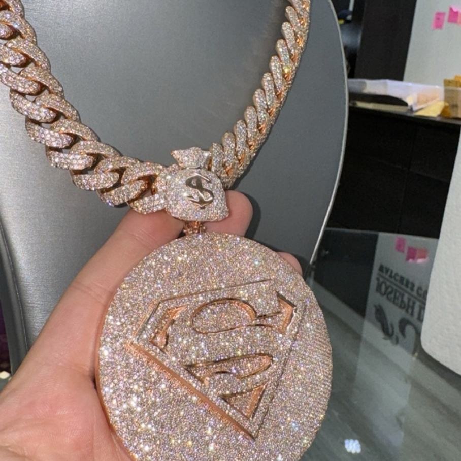 จี้เพชรโมอิสซาไนต์เต็มเม็ด ชุบทองคำขาว S925 สไตล์ฮิปฮอปหรูหราสำหรับผู้ชาย