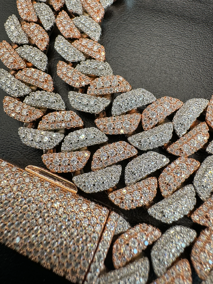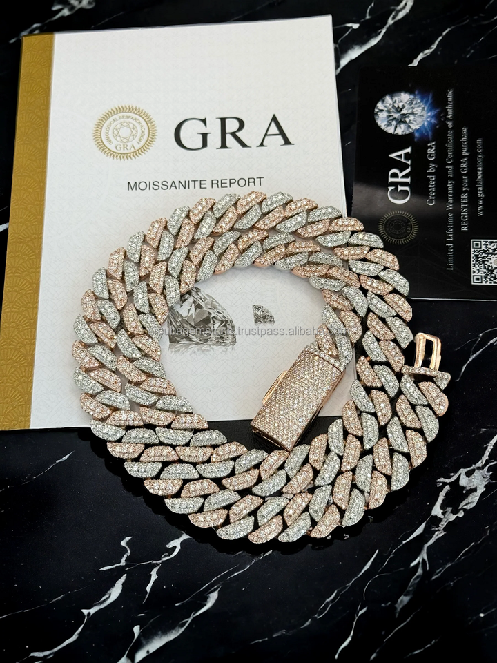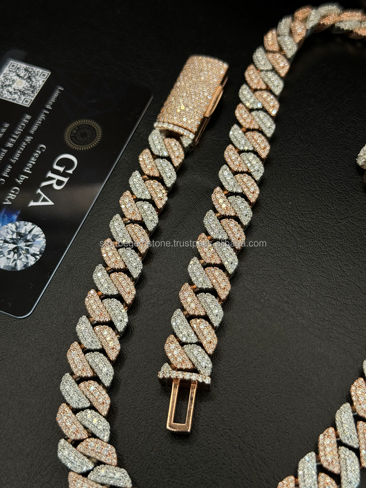 Rappers โซ่สองโทนสีคิวบา Link Chain iced Silver Moissanite เพชร hip hop ทองงานหมั้นเครื่องประดับผู้ชายสร้อยคอ22mm