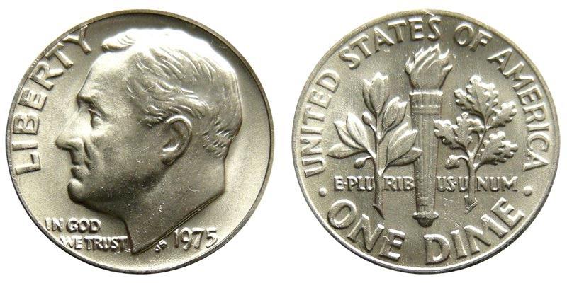 1975 S Uncirculated Roosevelt Dime Elegant Coinหมายเลขรุ่น