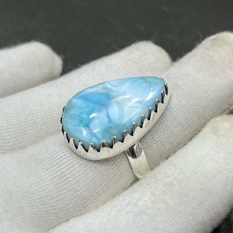 แหวนพลอยลาริมาร์ทรงรี เงินแท้ 925 สไตล์โบฮีเมียน ทำมือ รับรองโดย IGI ของขวัญสำหรับเธอทุกขนาด