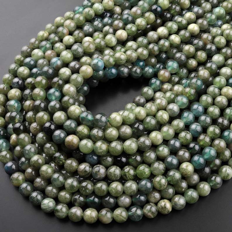 ลูกปัดอะพาไทต์สีเขียวธรรมชาติหายากทรงกลมสำหรับทำเครื่องประดับสร้อยคอสร้อยข้อมือขายส่ง